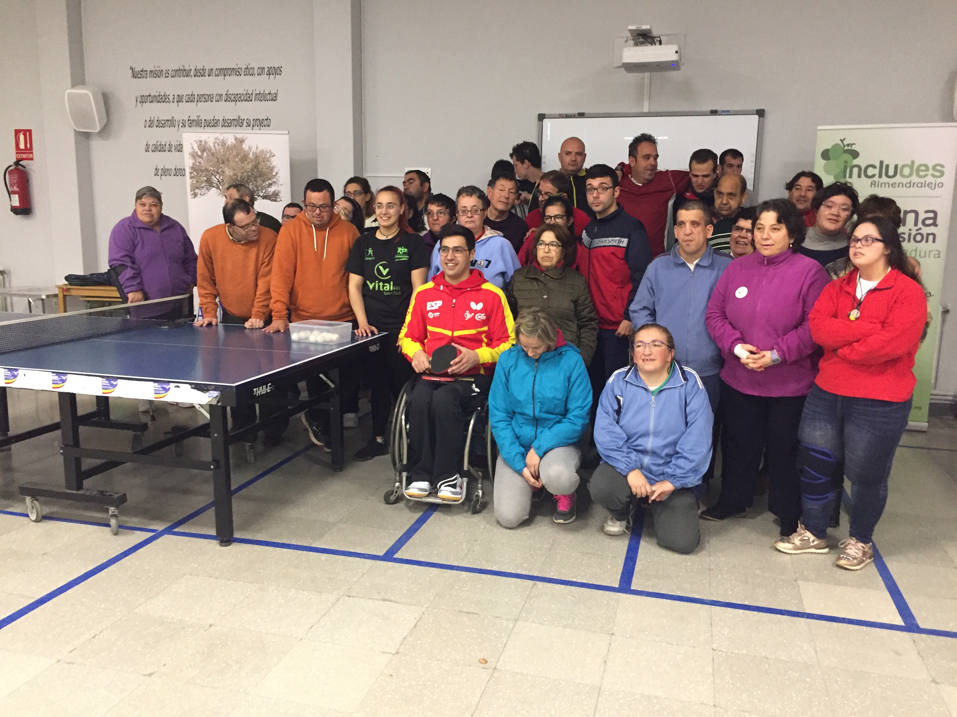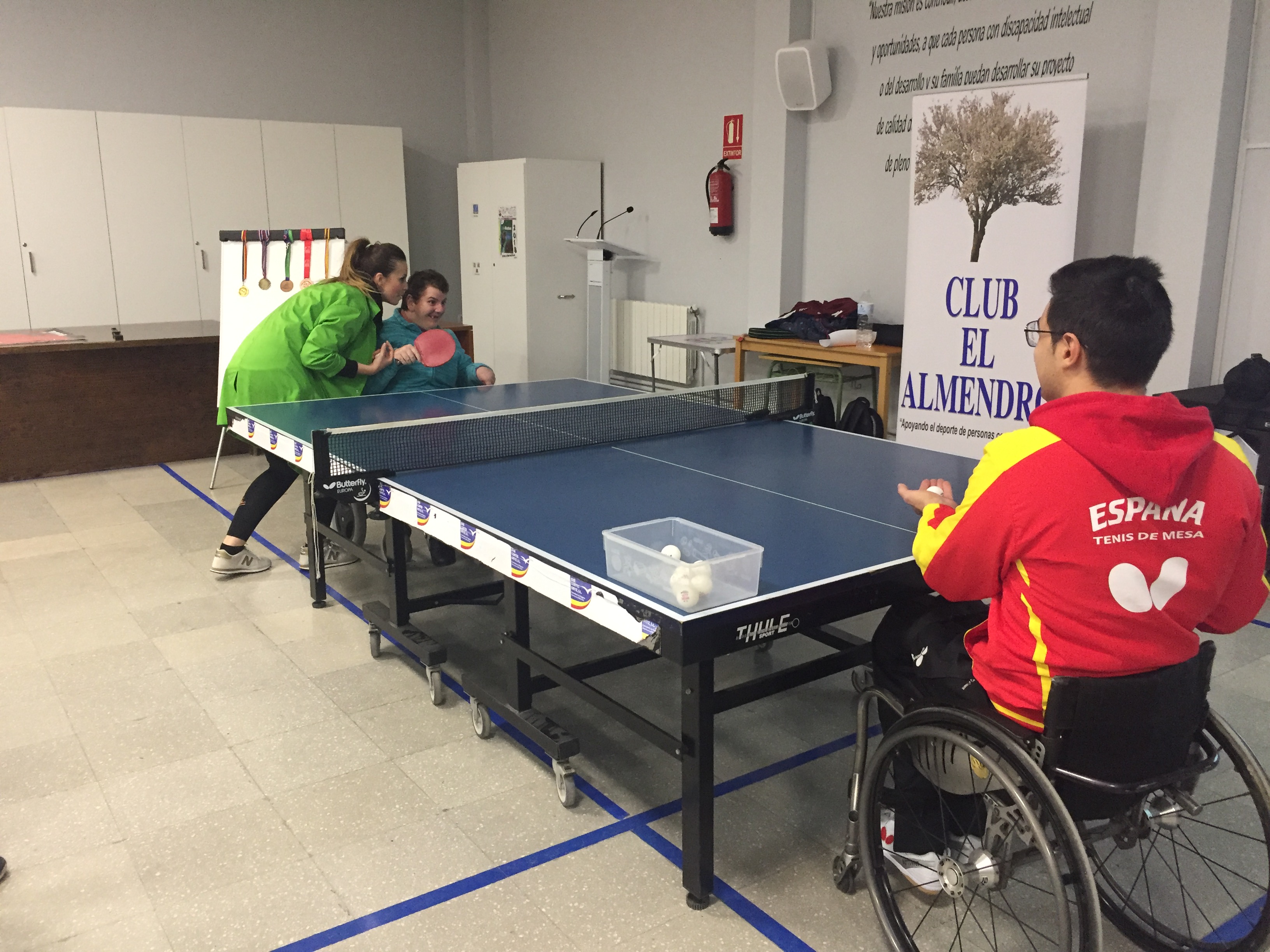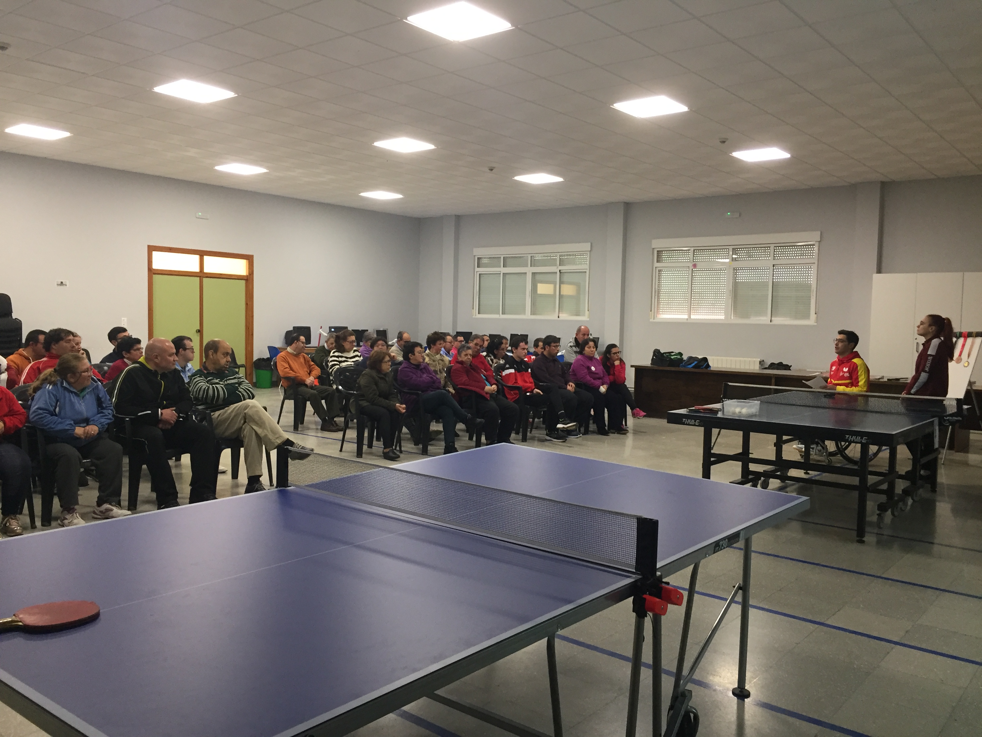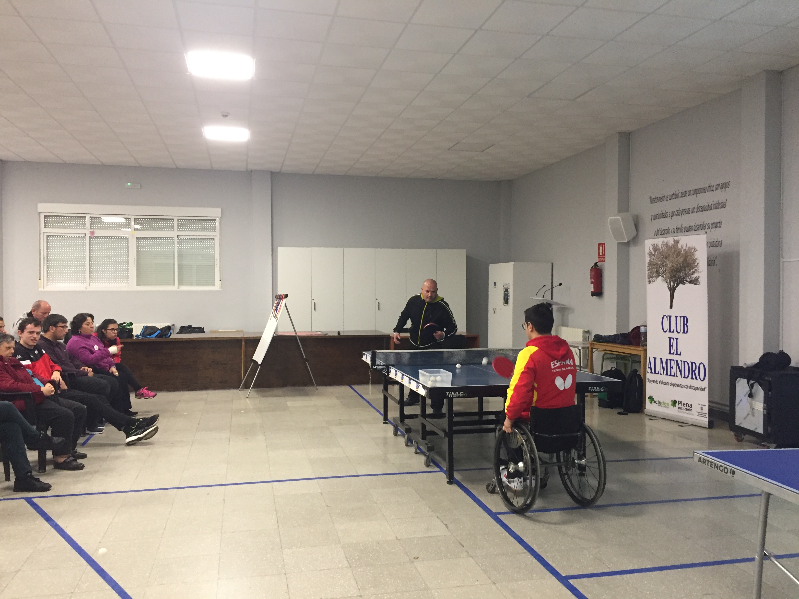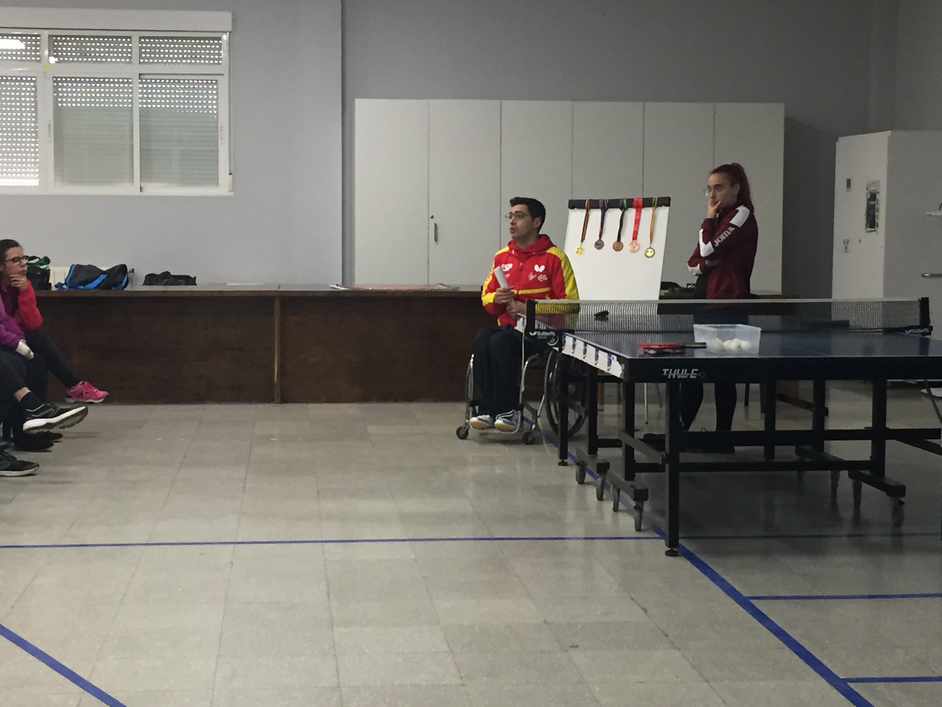 Vino acompañado de una compañera, Esther, que es monitora y jugadora también de tenis de mesa. Ambos nos hicieron una exhibición y posteriormente jugaron con nuestros chicos.